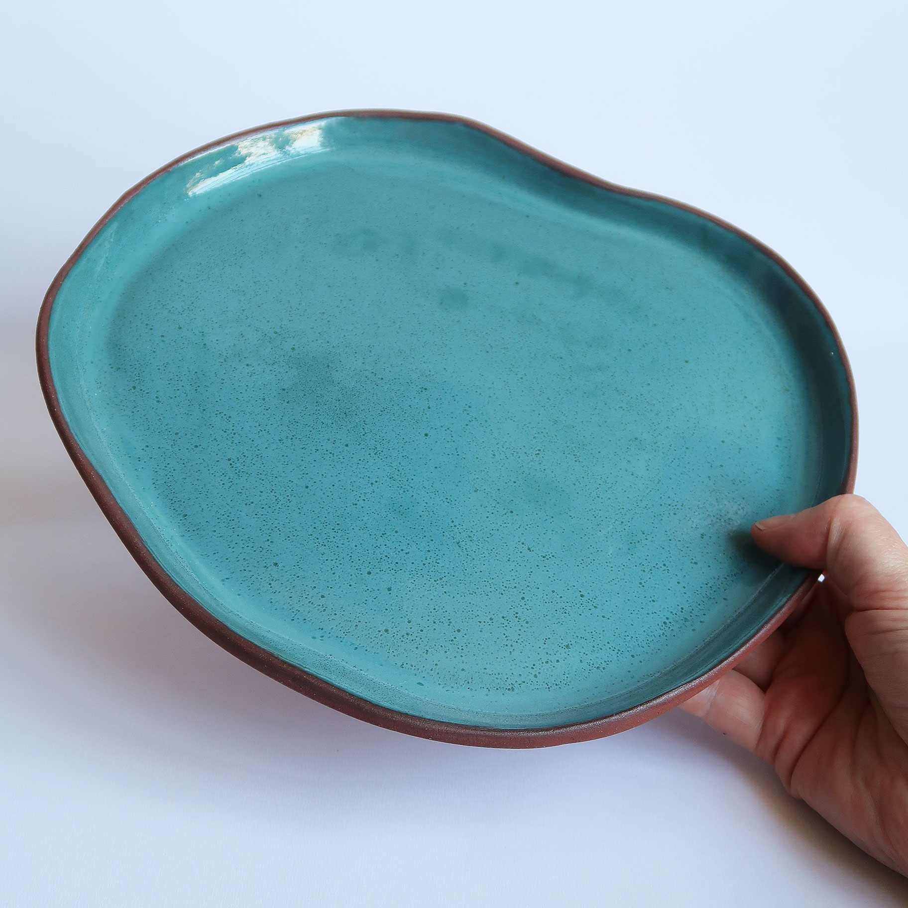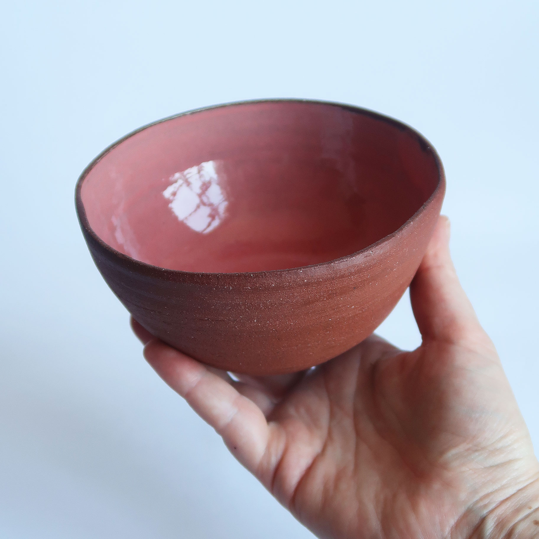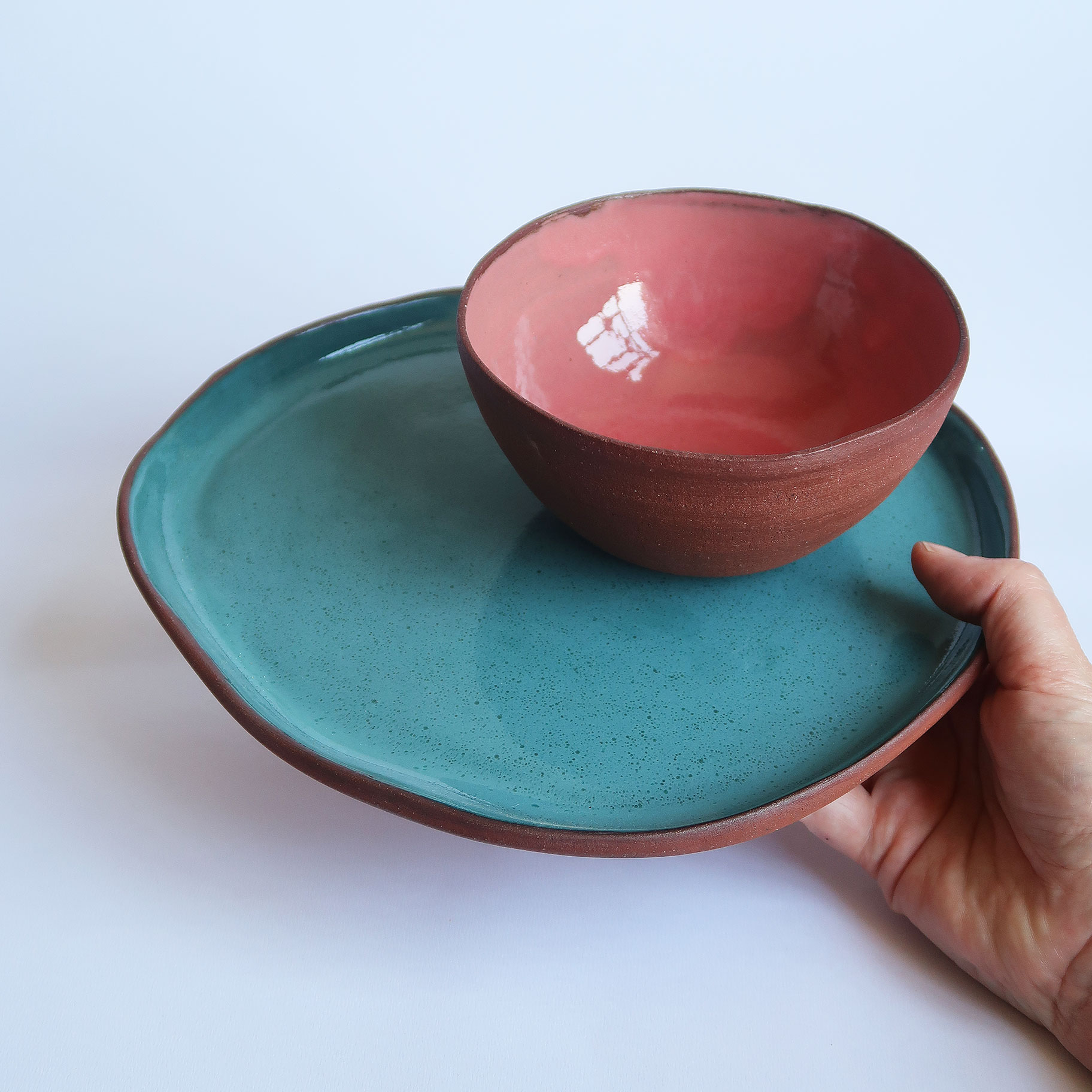 Prato e pote de cerâmica terracota feitos manualmente.